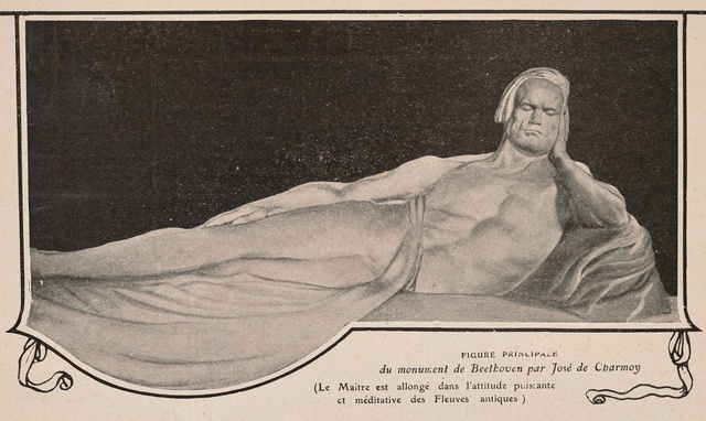 Ludwig van Beethoven, Denkmal in Wien, Detail, vier Putten als Verkörperung von vier Sinfonien Ludwig van Beethovens, 1885 - Heliogravüre des Kaiserlich-Königlichen Militär-Geographischen Instituts nach der Plastik von Caspar von Zumbusch von 1878/1880, erschienen im Verlag der Gesellschaft für vervielfältigende Kunst, Wien, 1885