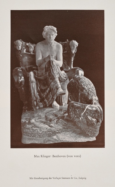 Ludwig van Beethoven, Denkmal am Beethovenplatz in Wien, Gesamtansicht, 1885 - anonyme Heliogravüre des Kaiserlich-Königlichen Militärgeographischen Instituts nach dem Denkmal von Caspar von Zumbusch von 1878/1880, erschienen im Verlag der Gesellschaft für Vervielfältigende Kunst, Wien, 1885
