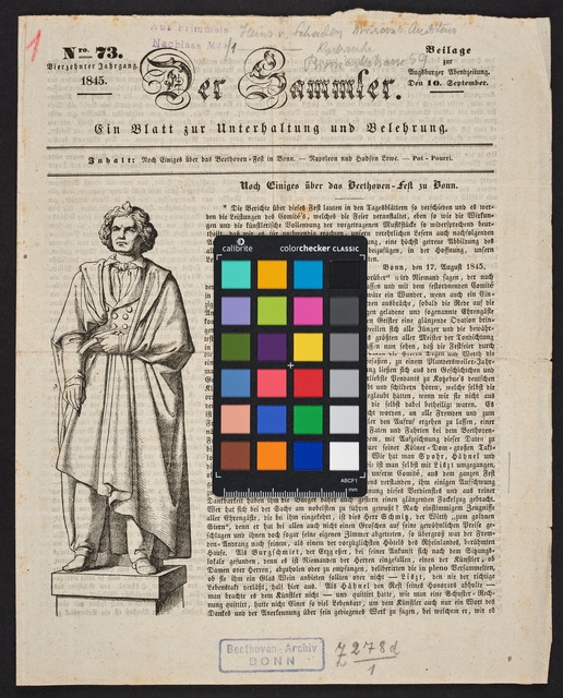 Ludwig van Beethoven, Denkmal auf dem Bonner Münsterplatz - Plastik von Ernst Julius Hähnel aus dem Jahr 1845, Fotografie, vermutlich von Hans-Peter Nimske, veröffentlicht von Michel und Co, Frankfurt a, M., um 1980