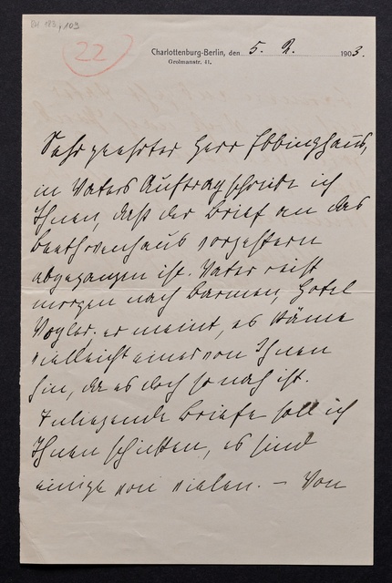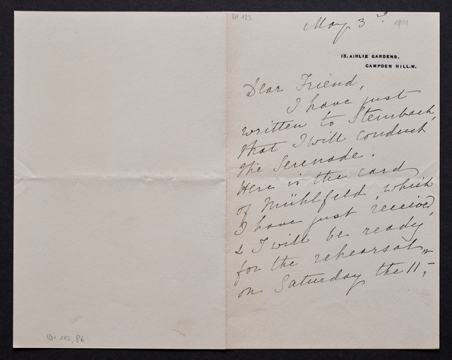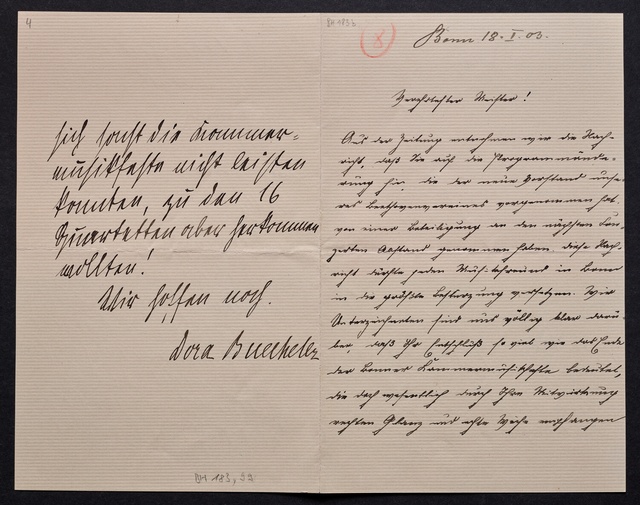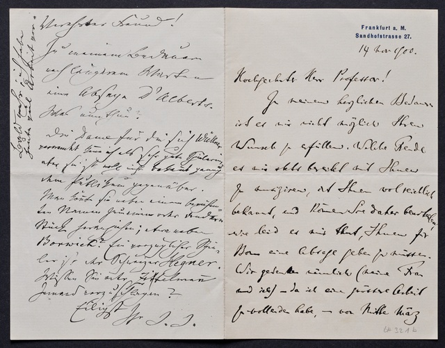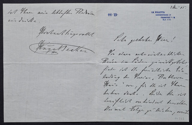 Hugo Becker, Brief an ein Mitglied des Vorstands des Vereins Beethoven-Haus, Frankfurt a.M., 3. Mai 1905, Autograph