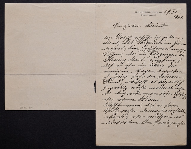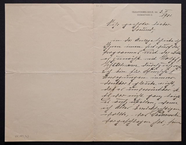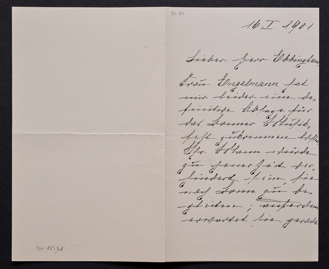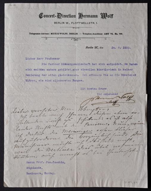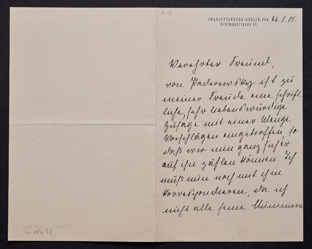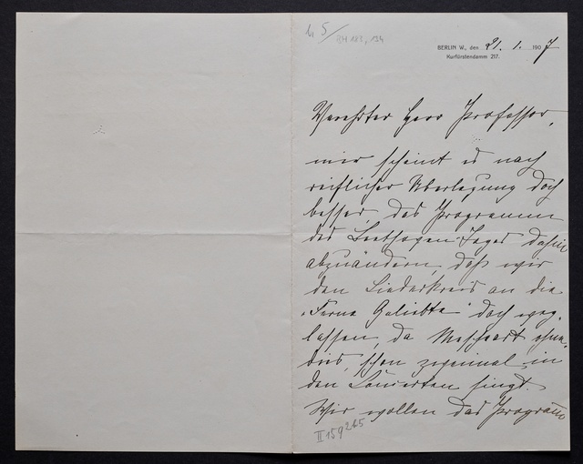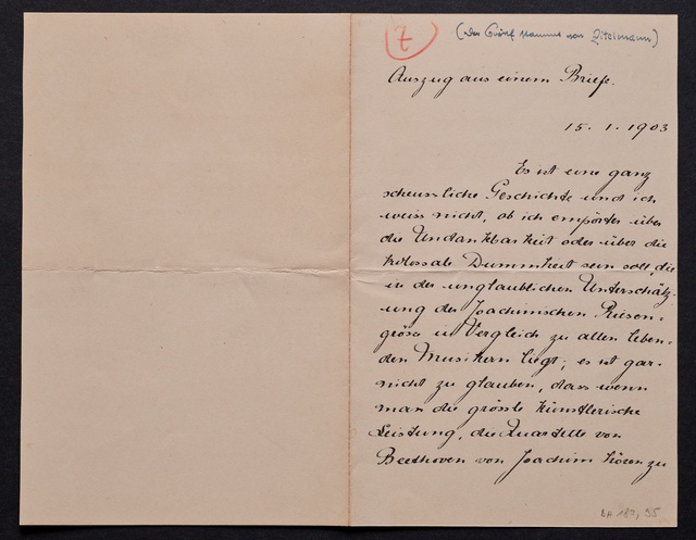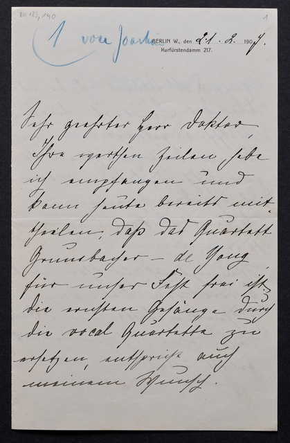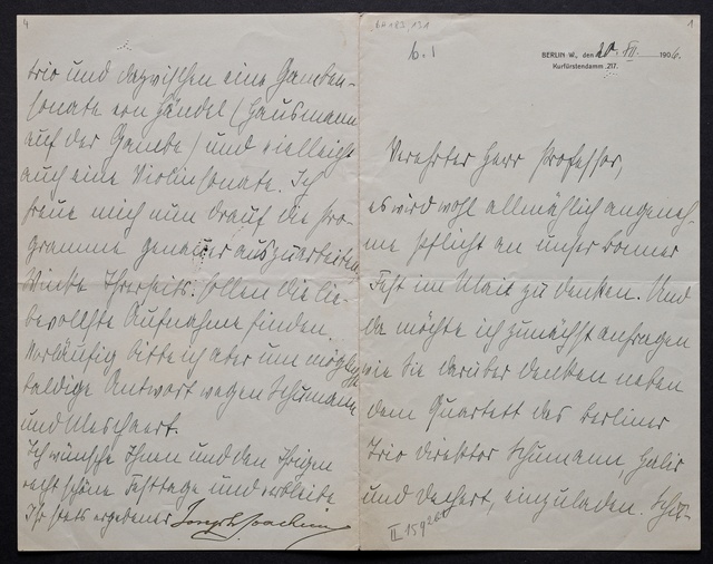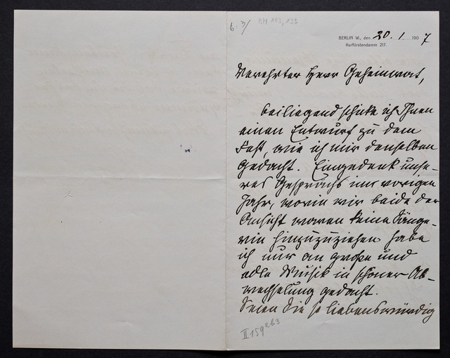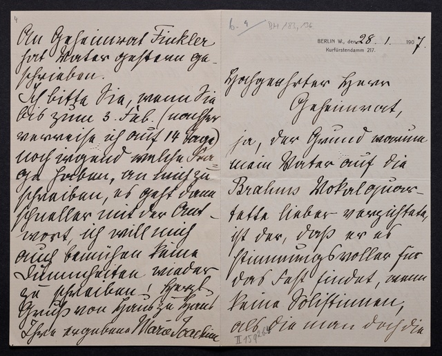 Joseph Joachim, Brief an Dittmar Finkler in Bonn, Berlin, 24. Januar 1907, Autograph