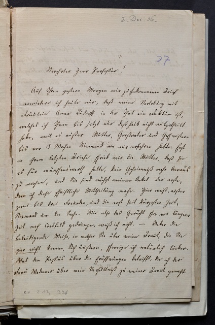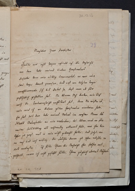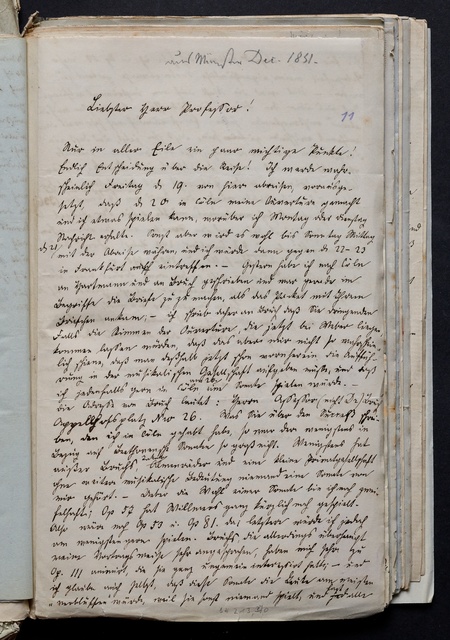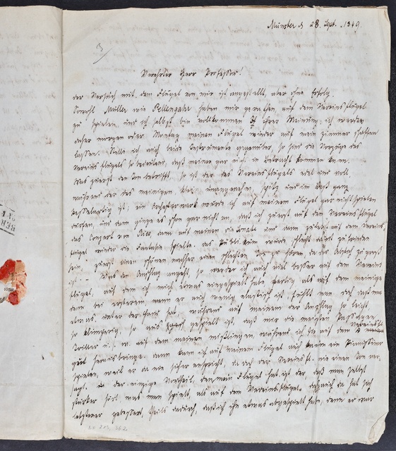 Anton Schindler, Brief an Franz Gerhard Wegeler in Koblenz, Münster, 20. Dezember 1834, Autograph