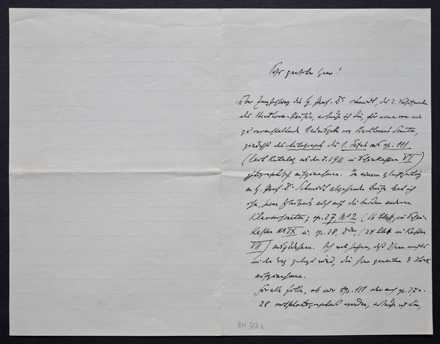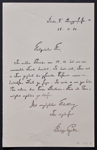 Heinrich Schenker, Brief an den Verein Beethoven-Haus Bonn, Wien, 9. Dezember 1913, Autograph