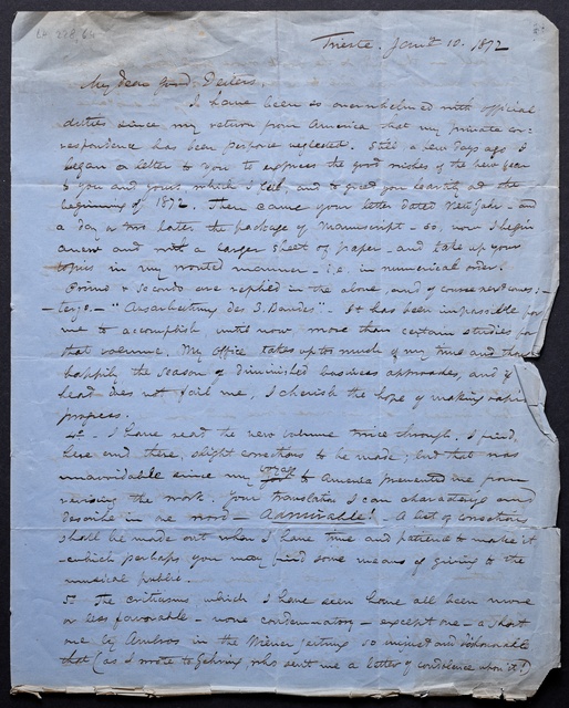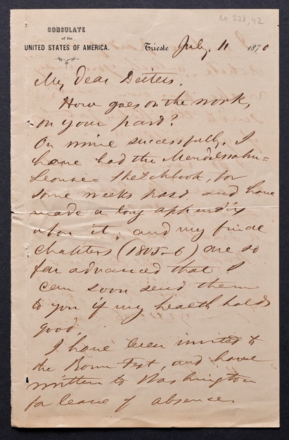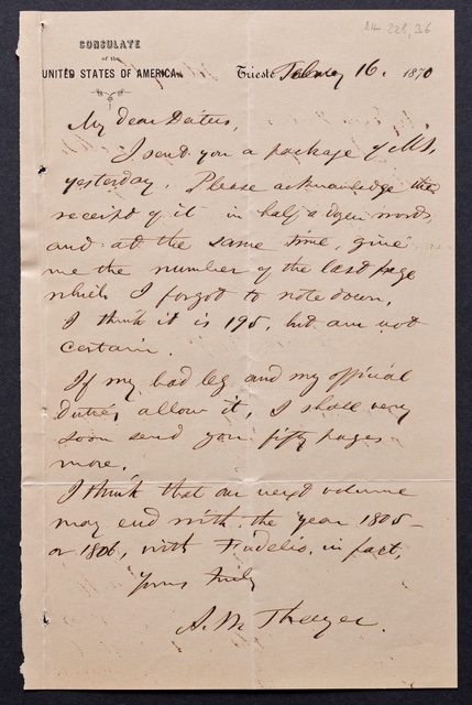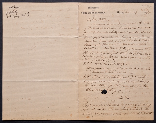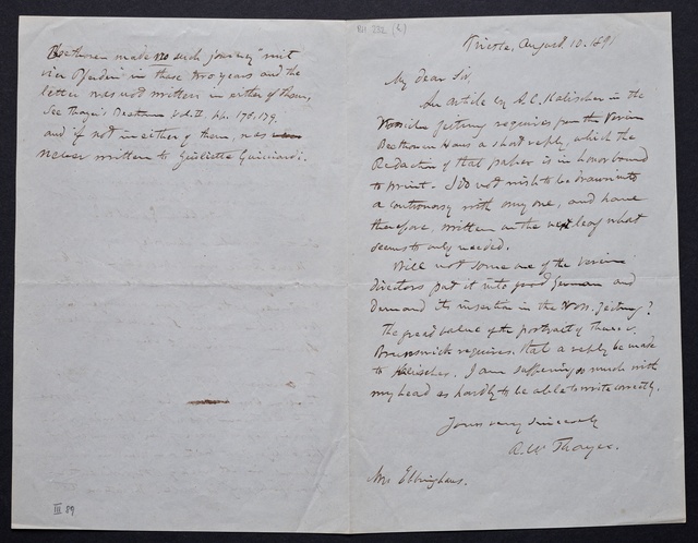 Ferdinand Ries, Brief an Franz Gerhard Wegeler in Koblenz, Rom, 6. November 1832, Autograph