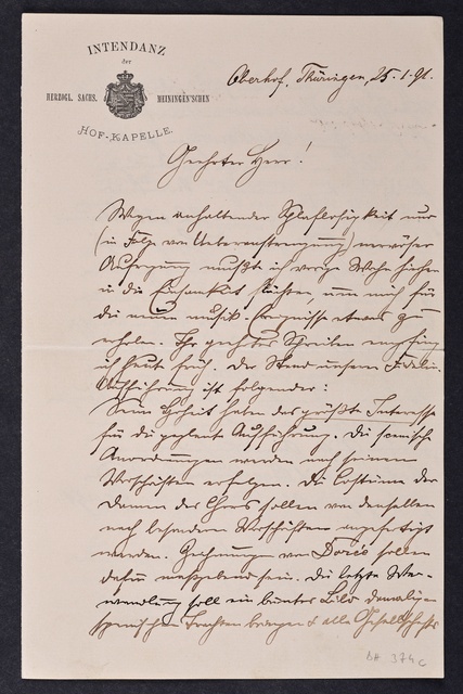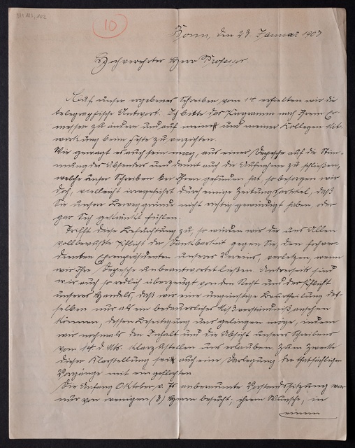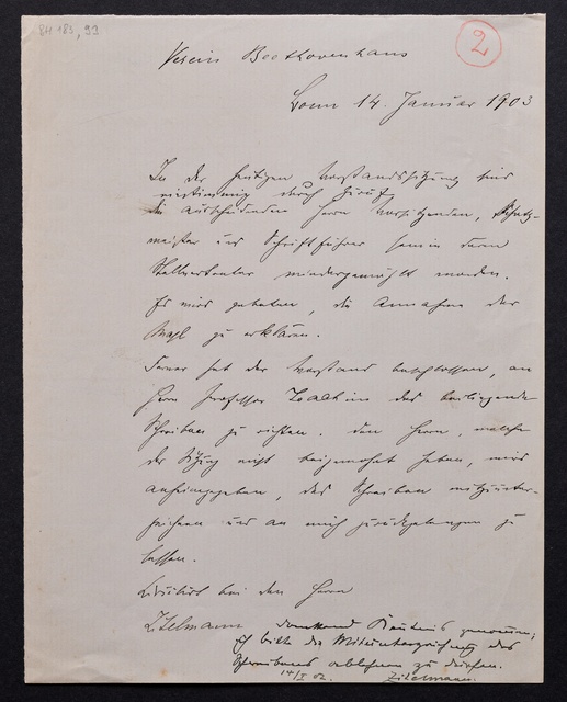 Joseph Joachim, Brief an ein Mitglied des Vorstands des Vereins Beethoven-Haus mit Geheimratstitel in Bonn, Berlin, 31. Januar 1905, Diktat