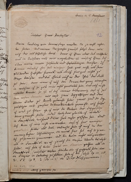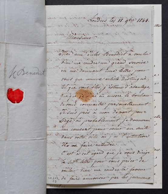 Léon de Saint-Lubin, Brief an Anton Schindler in Wien, Berlin, 14. September 1831, Autograph