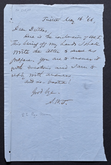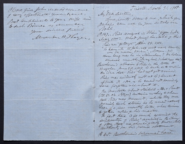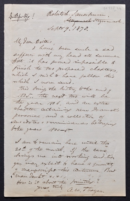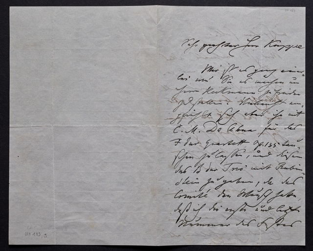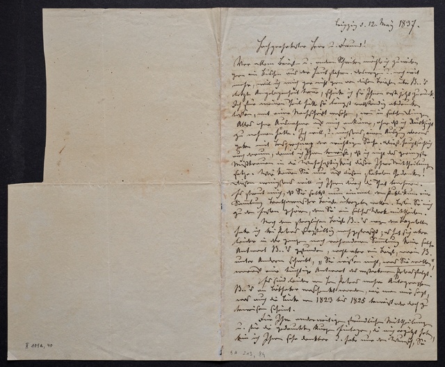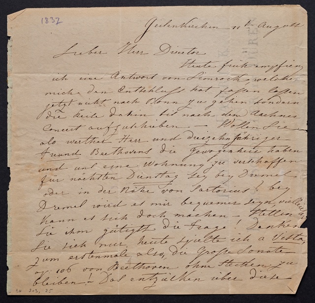 Ferdinand Ries, Brief an Franz Gerhard Wegeler in Koblenz, Frankfurt am Main, 11. Mai 1827, Autograph, Fragment