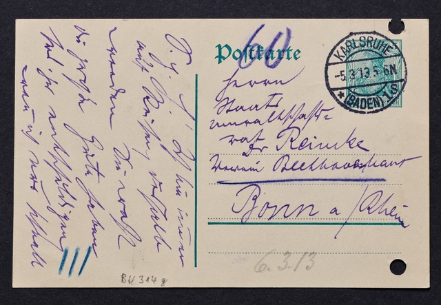Max Reger, Brief an den Verein Beethoven-Haus Bonn, Karlsruhe, 5. März 1913, Autograph