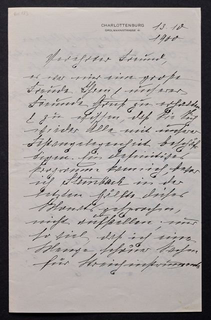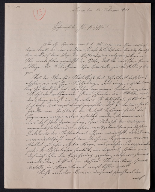 Joseph Joachim, Brief an Dittmar Finkler in Bonn, Berlin, 13. Februar 1907, Diktat