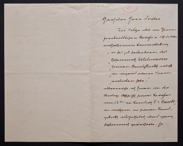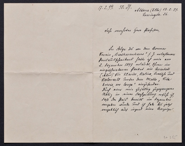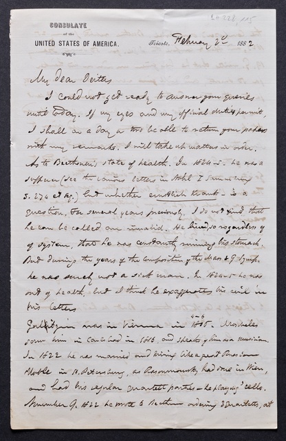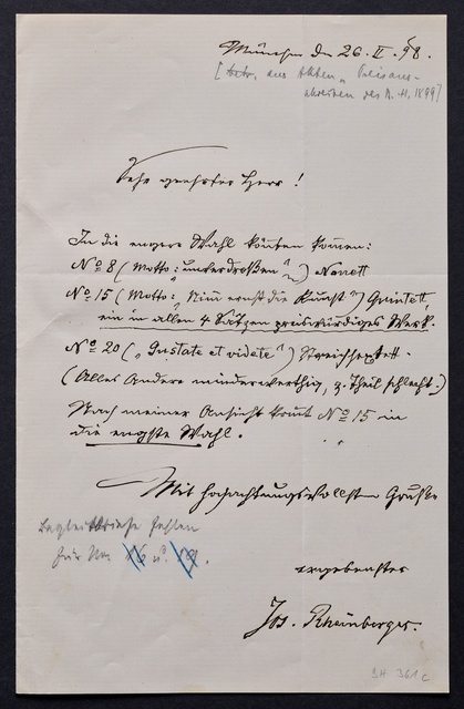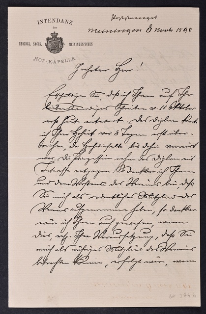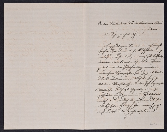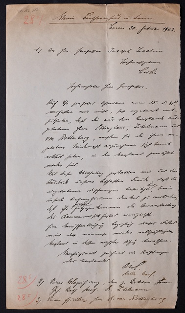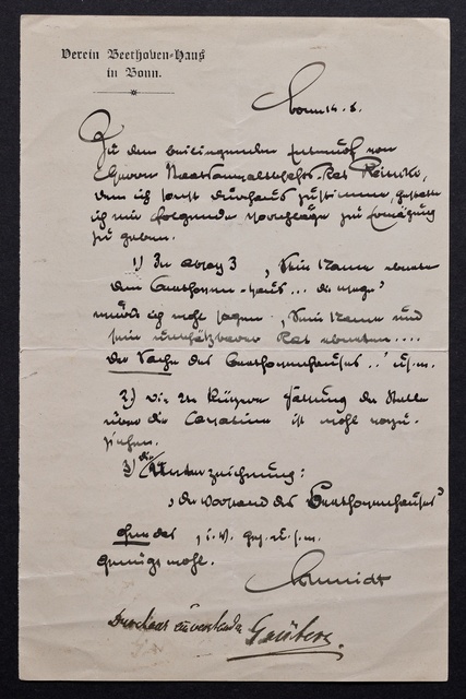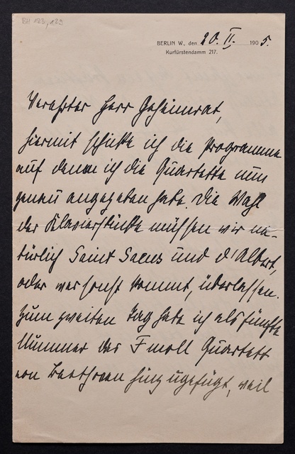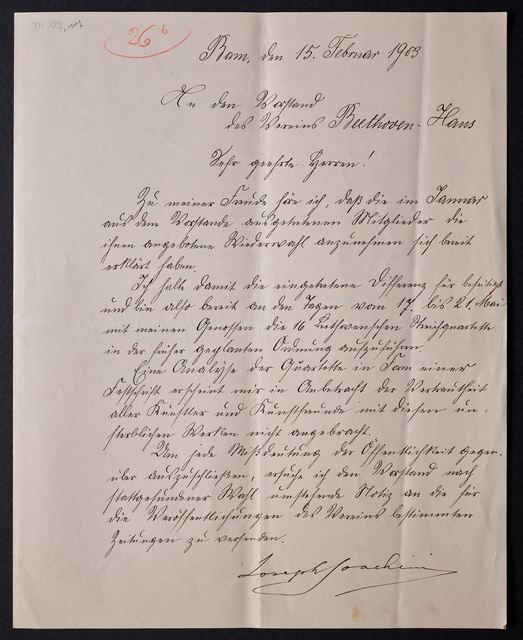 Joseph Joachim, Brief an ein Mitglied des Vorstands des Vereins Beethoven-Haus mit Geheimratstitel in Bonn, Berlin, 20. Februar 1905, Diktat