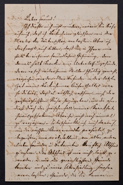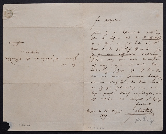 Ferdinand Ries, Brief an Franz Gerhard Wegeler in Koblenz, Bad Kreuznach, 24. August 1835, Autograph