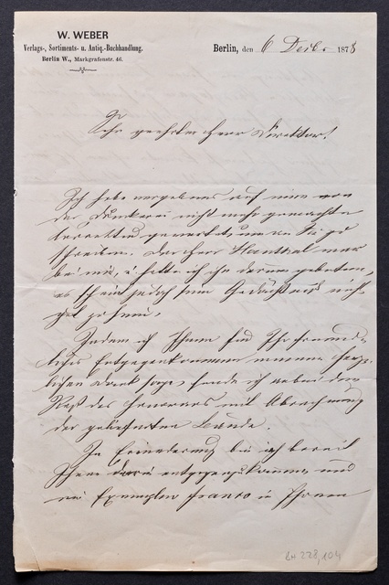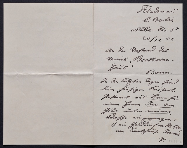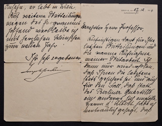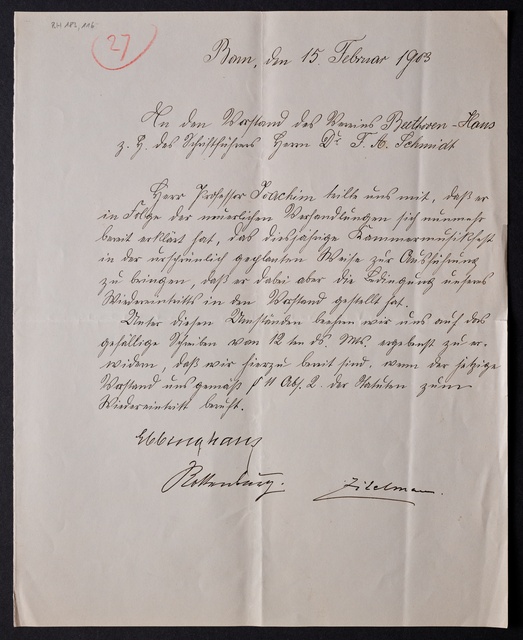 Joseph Joachim, Brief an ein Mitglied des Vorstands des Vereins Beethoven-Haus mit Professorentitel in Bonn, Berlin, 27. Dezember 1904, Diktat
