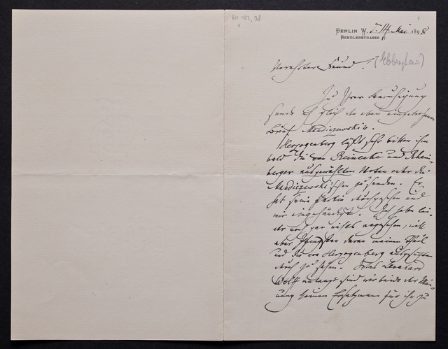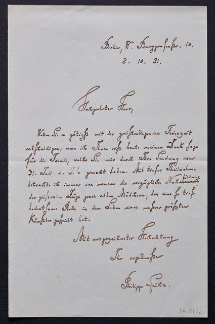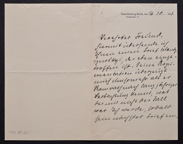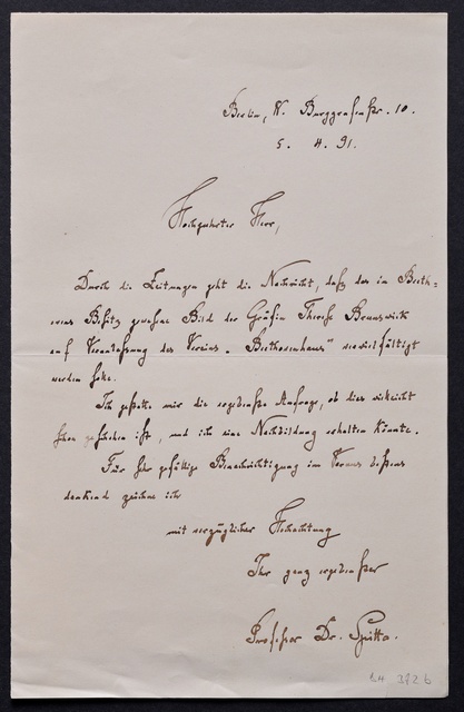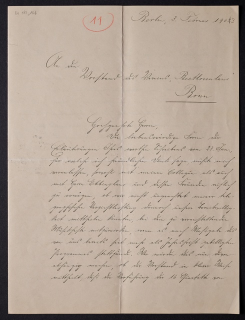 Joseph Joachim, Brief an ein Mitglied des Vorstands des Verein Beethoven-Haus mit Professorentitel in Bonn, möglicherweise Ernst Zitelmann, Berlin, 18. Juni 1906, Diktat