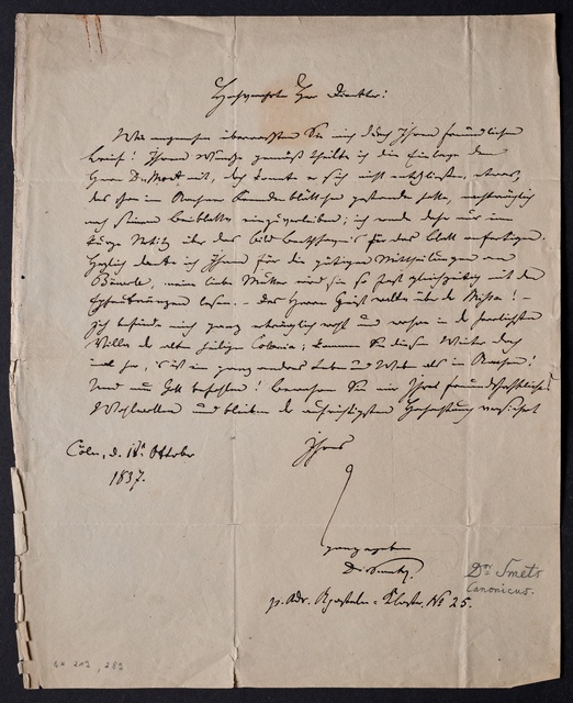 Ferdinand Ries, Brief an Franz Gerhard Wegeler in Koblenz, Aachen, 19. März 1834, Autograph