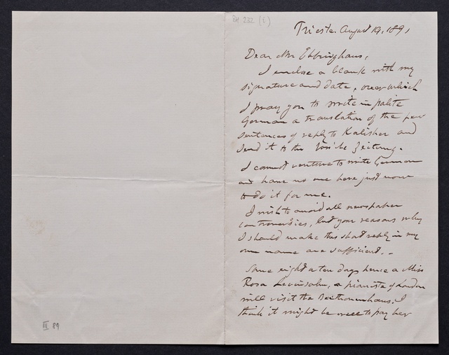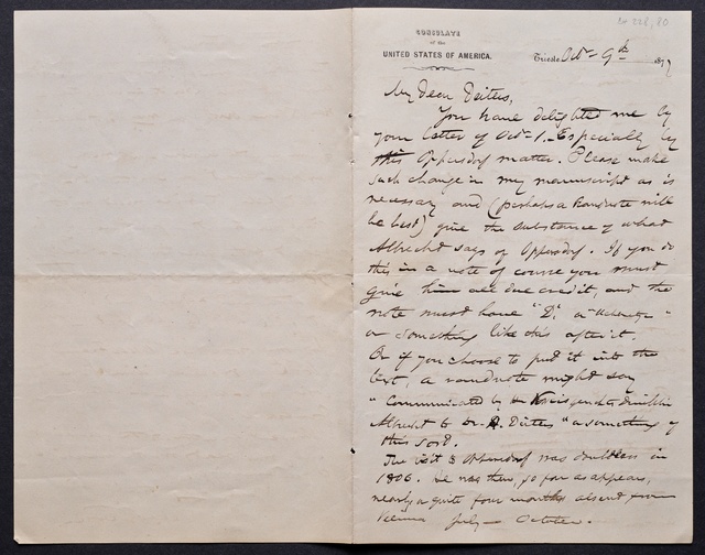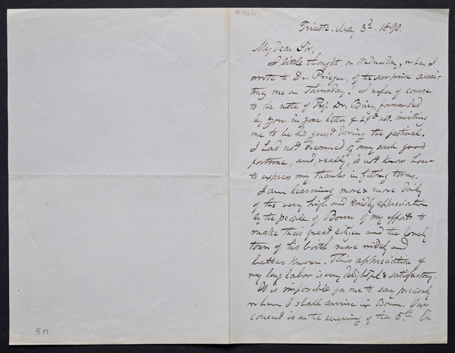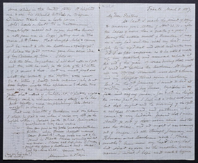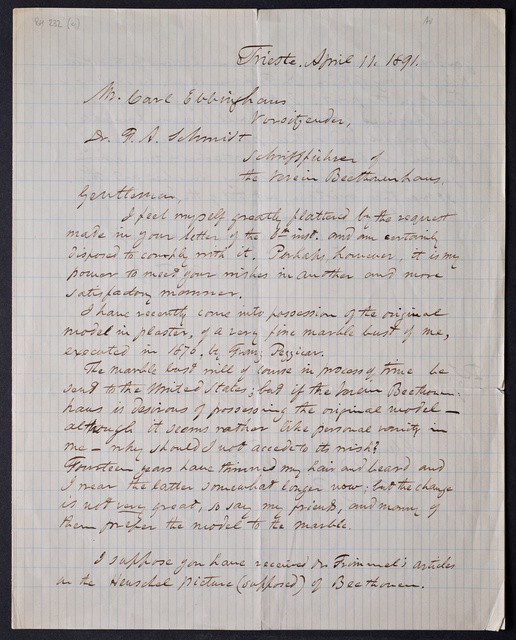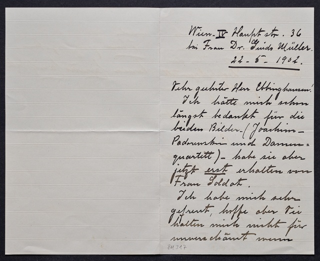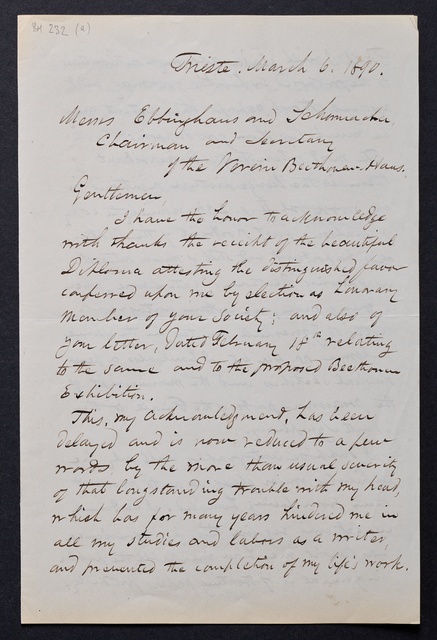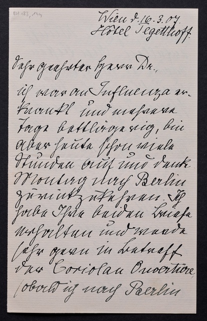 Joseph Joachim, Brief an ein Mitglied des Vorstands des Beethoven-Hauses in Bonn, wahrscheinlich Friedrich Knickenberg, Wien, 16. März 1907, Diktat