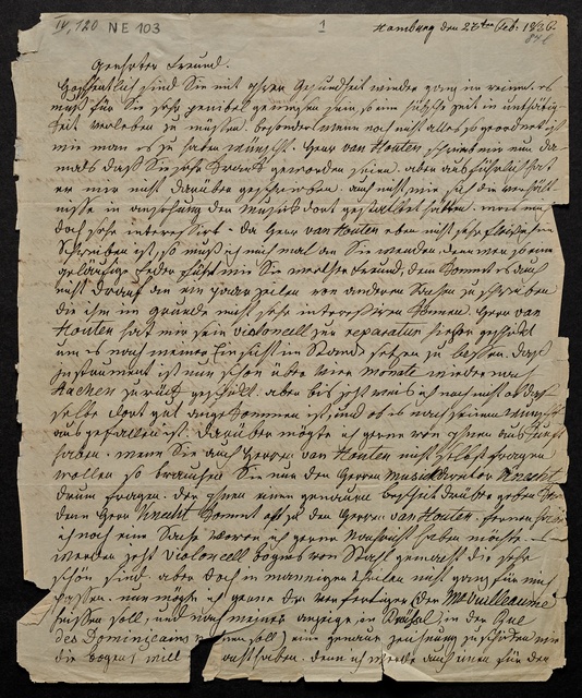Bernhard Romberg, Brief an Anton Schindler in Aachen, Hamburg, 23. Februar 1836
