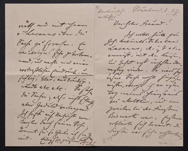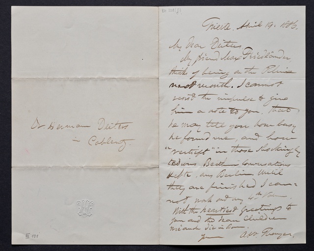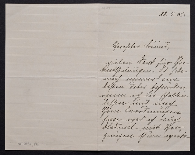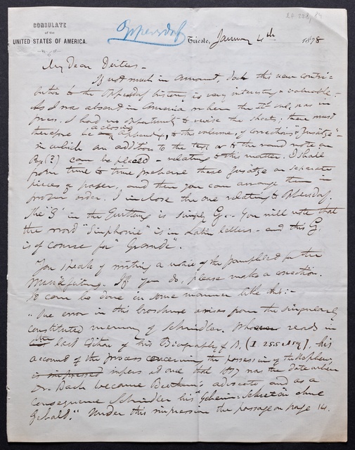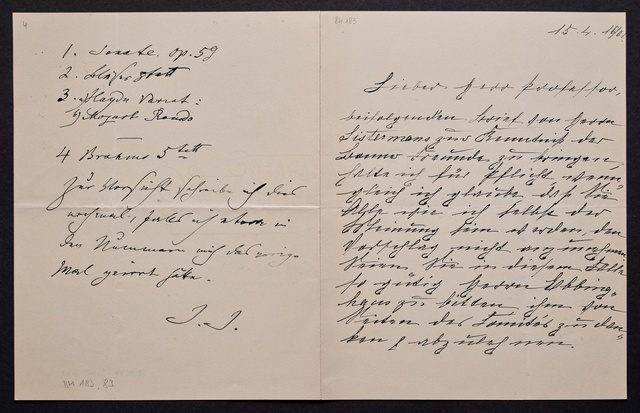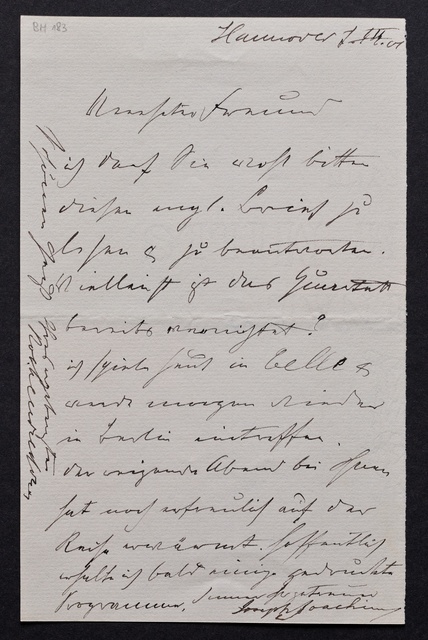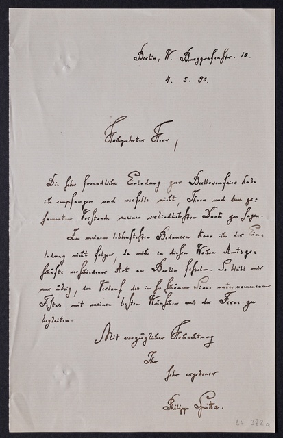 Joseph Joachim, Brief an Hugo Grüters in Bonn, Berlin, 3. April 1905, Diktat, Fragment