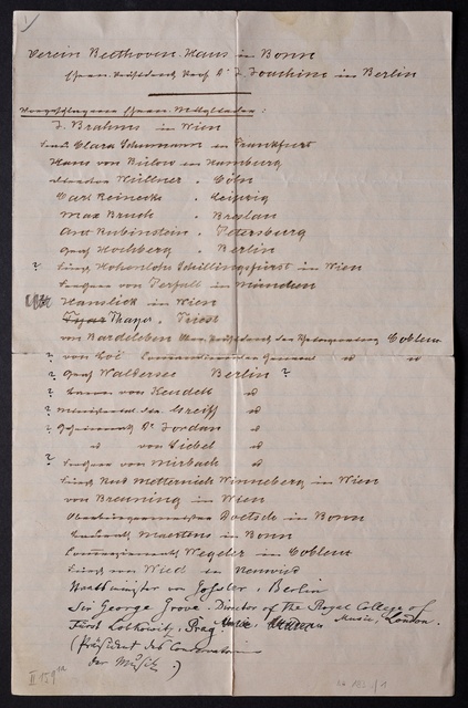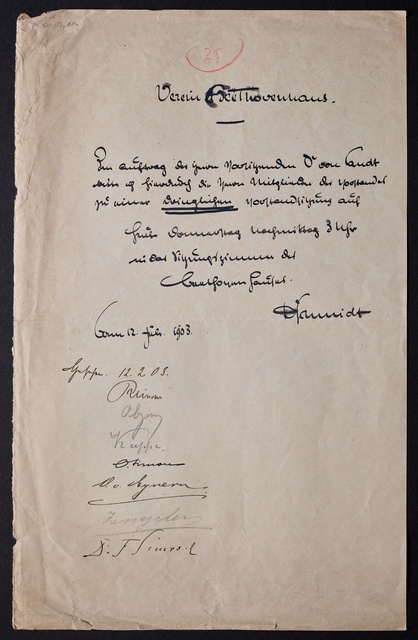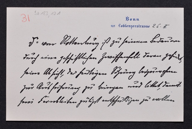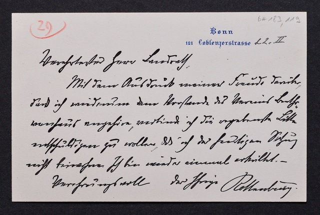 Franz Johannes von Rottenburg, Nachricht an den Vorstand des Vereins Beethoven-Haus, Bonn, 26. Februar 1903, Autograph