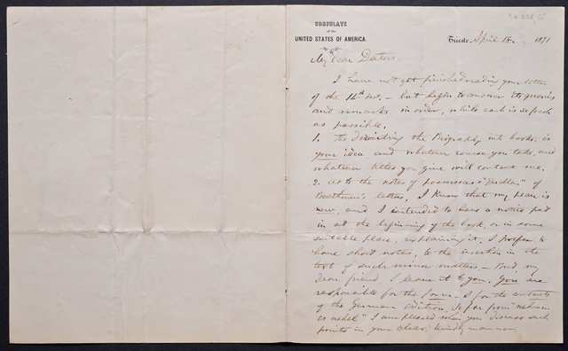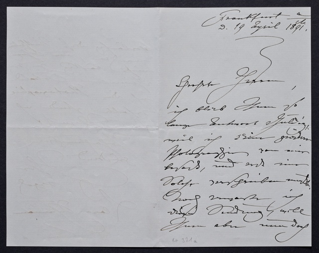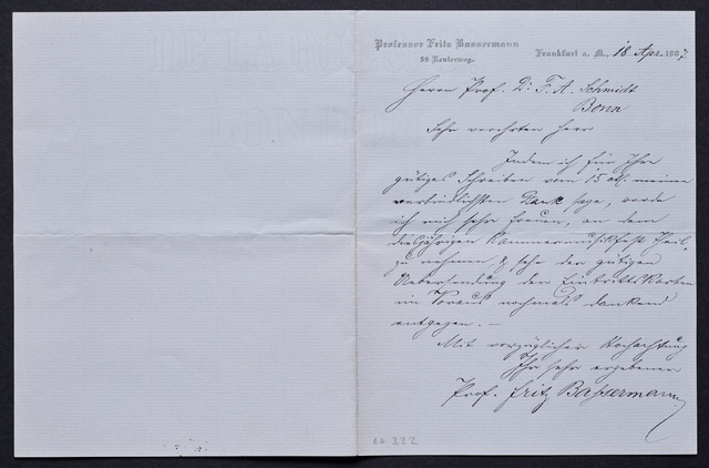 Fritz Bassermann, Brief an Ferdinand August Schmidt, Frankfurt a.M., 18. April 1907, Autograph