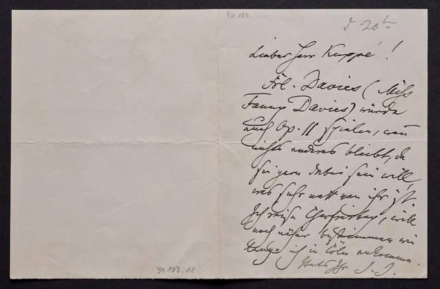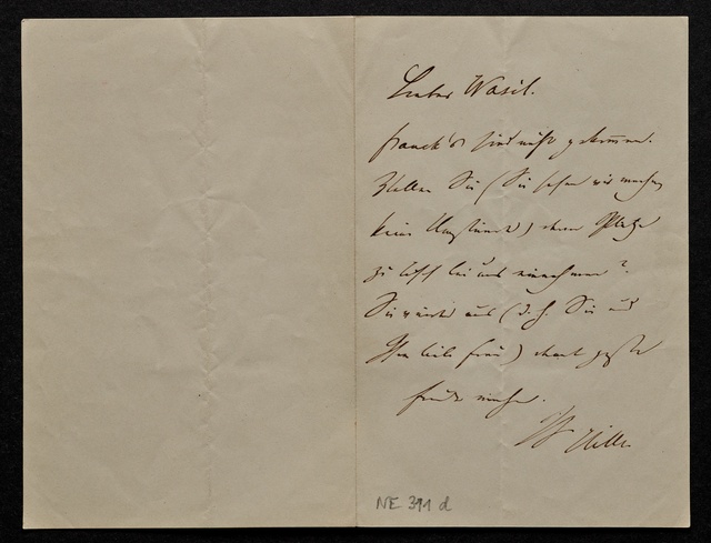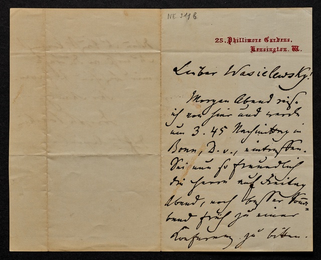 Ferdinand Hiller, Billet an Wilhelm Joseph von Wasielewski in Bonn, undatiert, Autograph