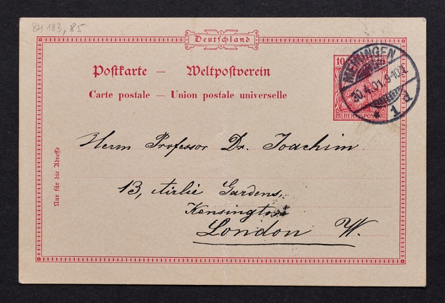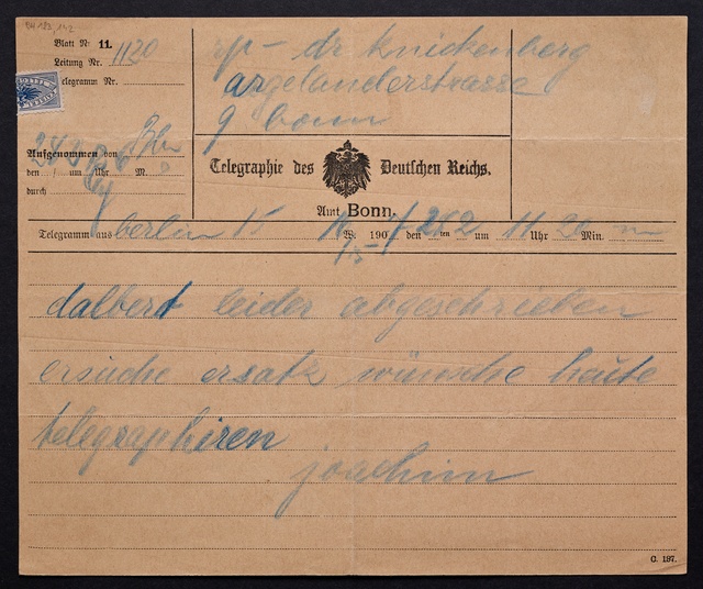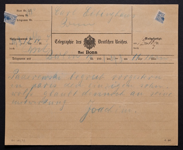 Joseph Joachim, Telegramm an Friedrich Knickenberg in Bonn, Berlin, 28. Februar 1907