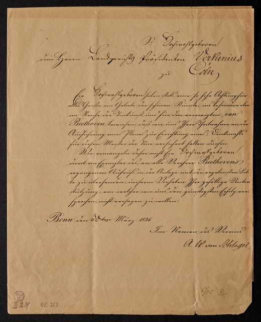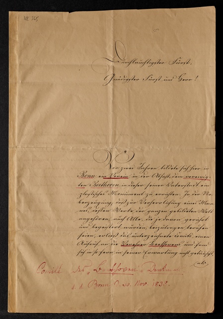 Verein für Beethovens Denkmal (Bonn), Brief an einen unbekannten Fürsten, Bonn, 30. November 1838