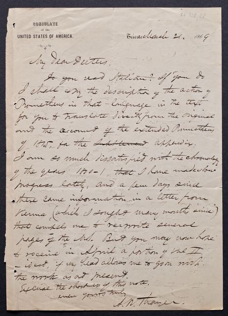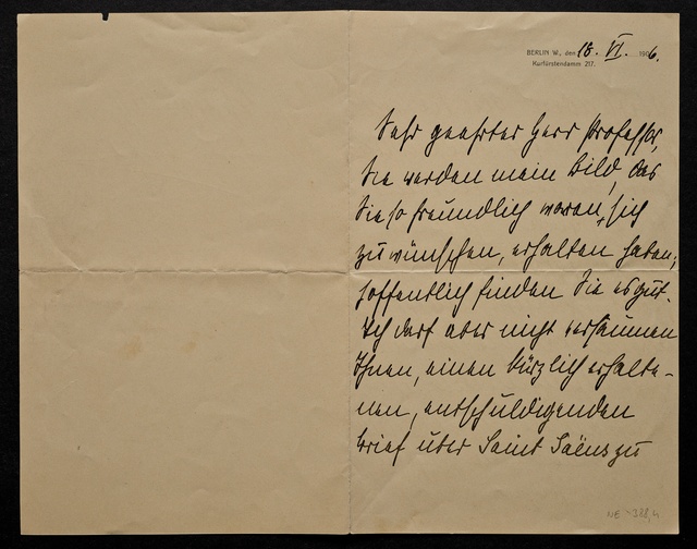 Max Klinger, Brief an den Präsidenten des Bayerischen Maximilianordens für Kunst und Wissenschaft, Leipzig, 28. November 1910, Autograph