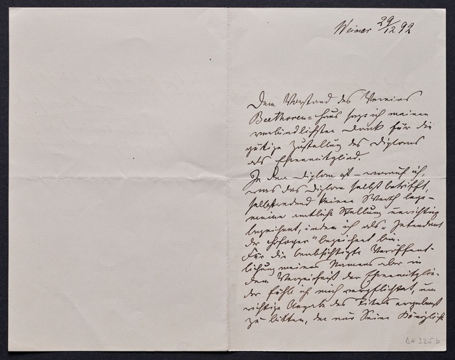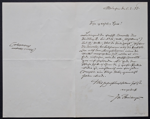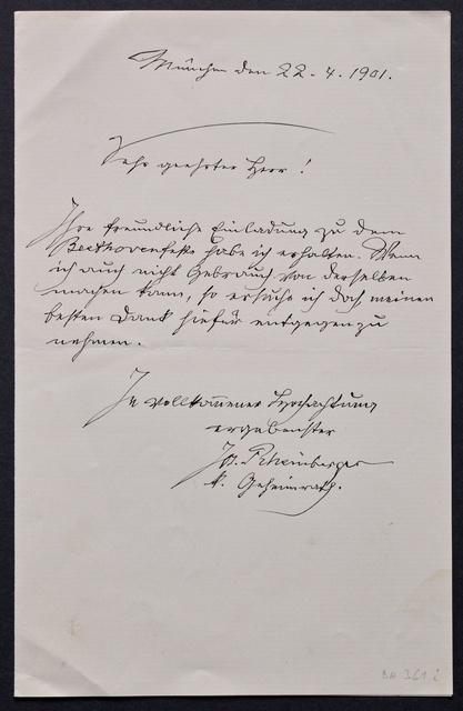 Franz von Stuck, Brief an den Verein Beethoven-Haus in Bonn, München, 16. Dezember 1905, Autograph