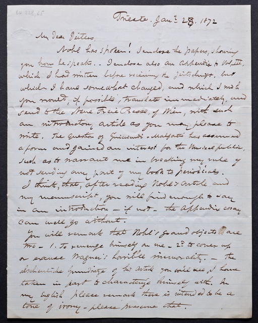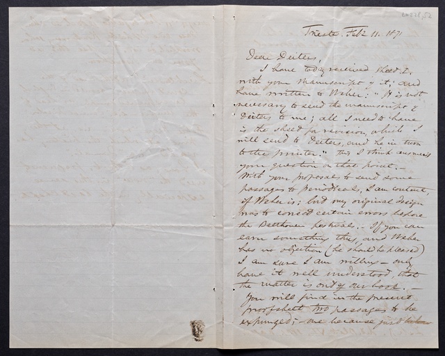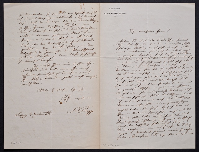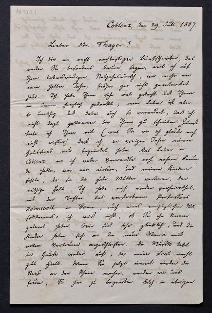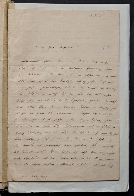 Franz Gerhard Wegeler, Brief an Hubert Ries in Berlin, Koblenz, 29. und 30. Januar 1847, Autograph