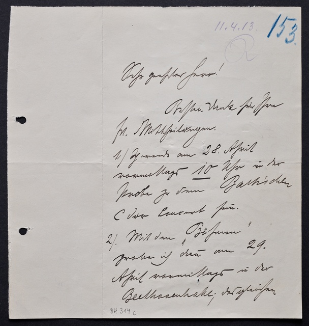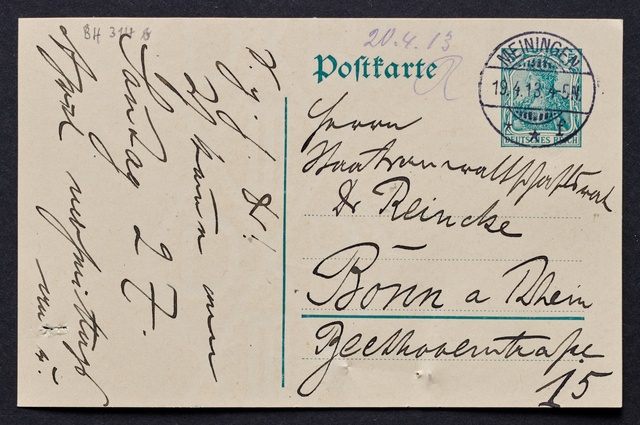 Max Reger, Brief an den Verein Beethoven-Haus Bonn, Meiningen, 19. April 1913, Autograph