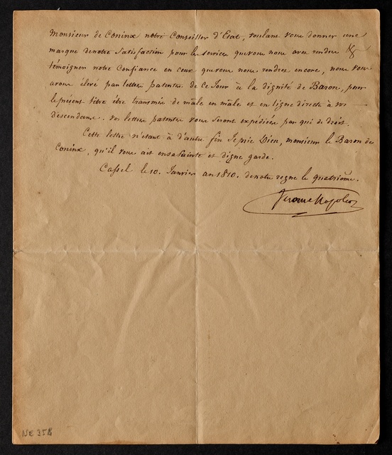 Jérôme (Westfalen, König), Brief an Peter Heinrich Coninx, Kassel, 10. Januar 1810, Autograph
