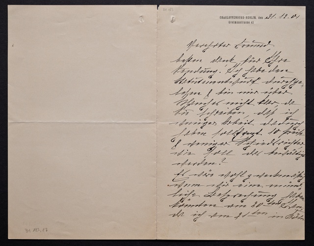 Joseph Joachim, Brief an ein Mitglied des Vorstands des Vereins Beethoven-Haus mit Professorentitel in Bonn, Berlin, 20. Dezember 1906, Diktat