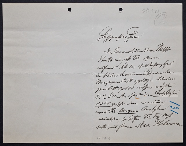 Max Reger, Brief an den Verein Beethoven-Haus Bonn, Meiningen, 23. März 1913, Autograph