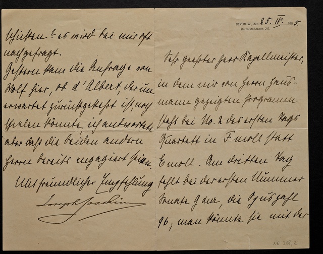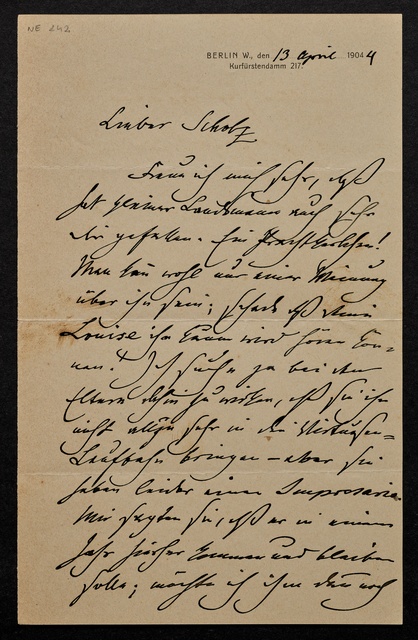 Joseph Joachim, Brief an Herrn Scholz, Berlin, 13. April 1904, Autograph