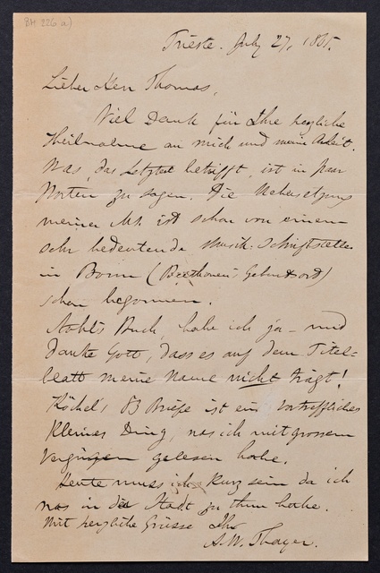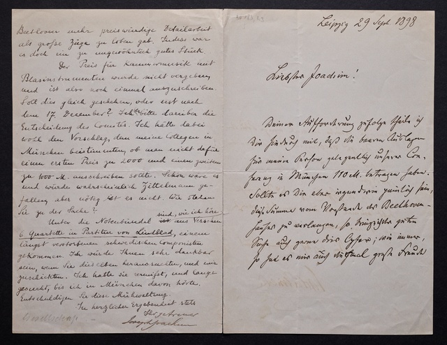 Joseph Joachim, Brief an Wilhelm Joseph von Wasielewski in Bonn, Salzburg, 26. September ohne Jahreszahl, Autograph