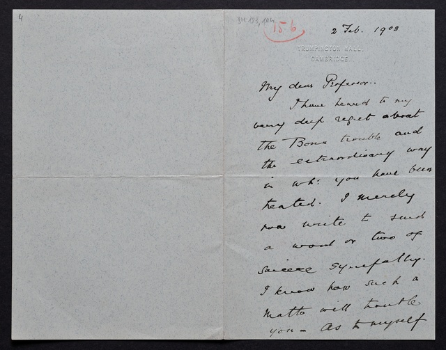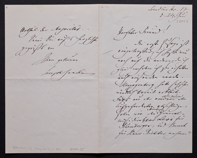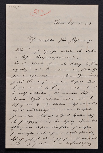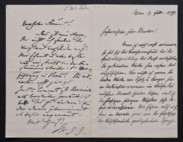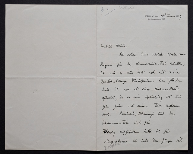 Joseph Joachim, Brief an ein Mitglied des Vorstands des Beethoven-Hauses in Bonn, wahrscheinlich Friedrich Knickenberg, Berlin, 21. Februar 1907, Diktat
