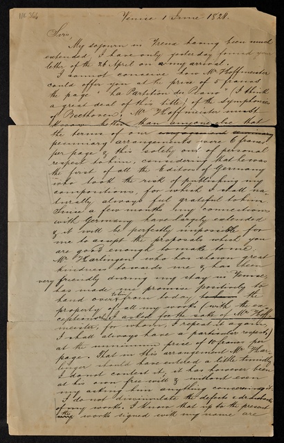 Carl Czerny, Brief an Friedrich Hofmeister in Leipzig, Wien, 2. Mai 1832, Autograph