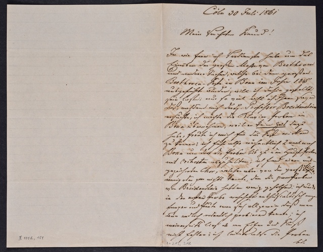 Anton Schindler, Brief an Joseph August Röckel in Aachen, Wien, 30. Juli 1829, Autograph