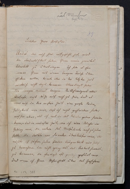 Anton Schindler, Brief an Franz Gerhard Wegeler in Koblenz, Münster, 24. Mai 1832, Autograph