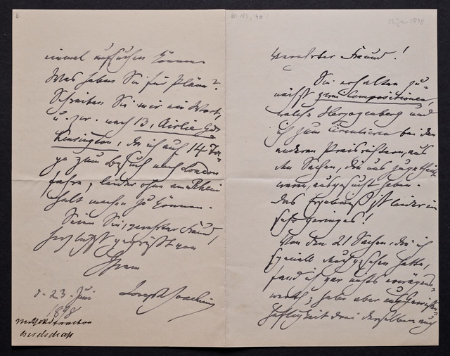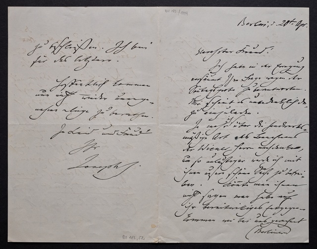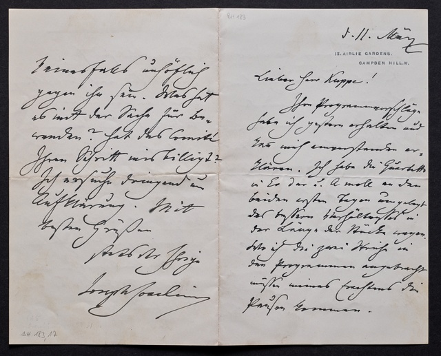 Joseph Joachim, Brief an Wilhelm Kuppe in Bonn, wahrscheinlich Berlin, vermutlich 5. März 1893, Autograph