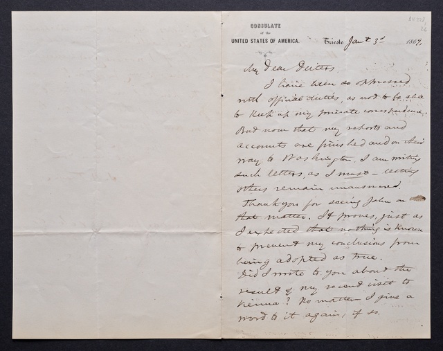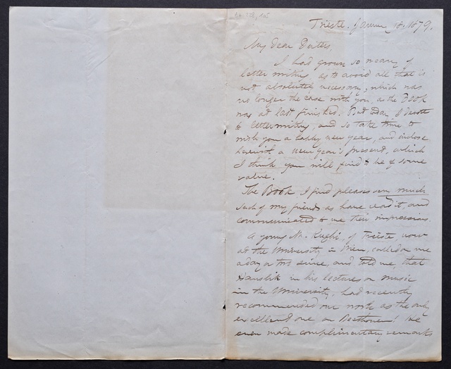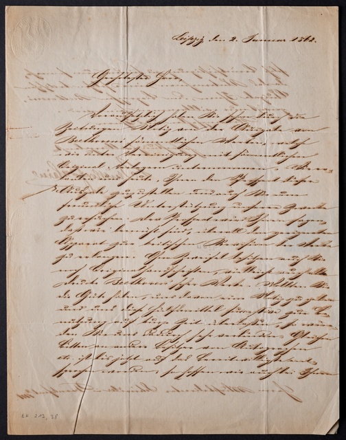 Anton Schindler, Brief an Franz Gerhard Wegeler in Koblenz, Pest, 9. Januar 1828, Autograph