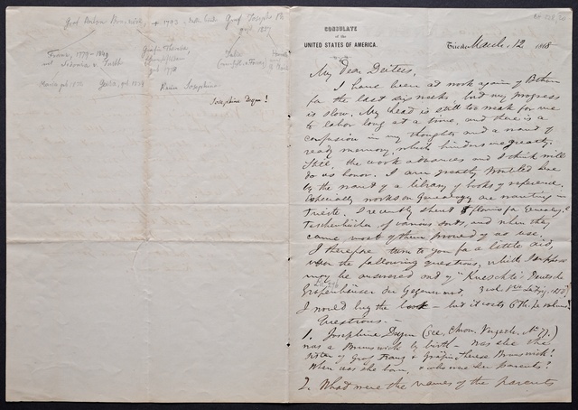 Moritz Trenck von Tonder, Brief an Antonia Brentano in Frankfurt am Main, Wien, 28. März 1827, Autograph