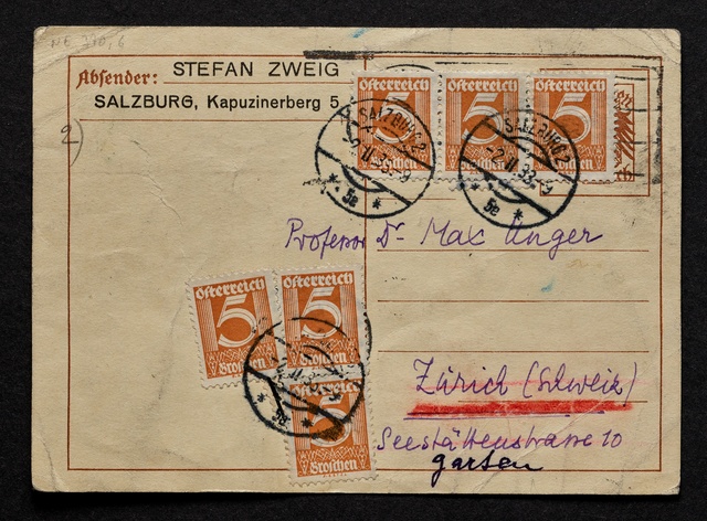 Stefan Zweig, Postkarte an Max Unger, Salzburg, 19. Februar 1934, Typoskript