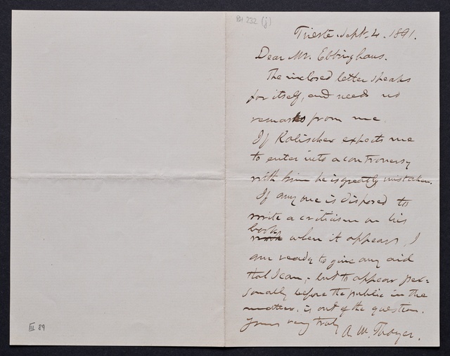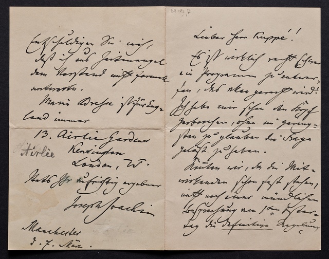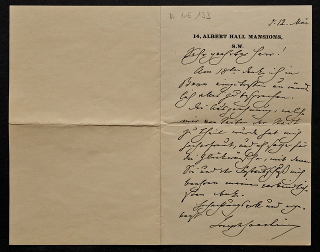 Joseph Joachim, Brief an Fritz Bottler in Bonn, South Kensington, 12. Mai 1906, Autograph
