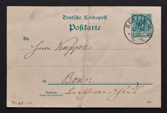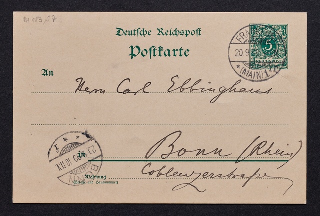 Naoum Aronson, Postkarte an den Verein Beethoven-Haus in Bonn, Paris, 1. September 1907, Autograph