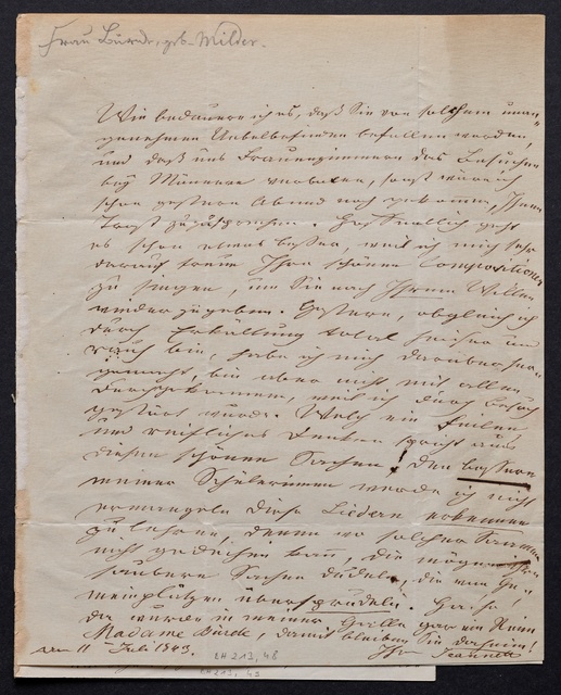 Moritz Trenck von Tonder, Brief an Antonia Brentano in Frankfurt am Main mit einer Abschrift der Grabrede "Bey Beethovens Leichenbegängnis" von Franz Grillparzer, Wien, 7. April 1827, Autograph