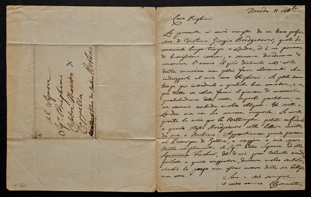 Muzio Clementi, Brief an Vincenzo Righini in Berlin, Dresden, 11. September 1803, Autograph