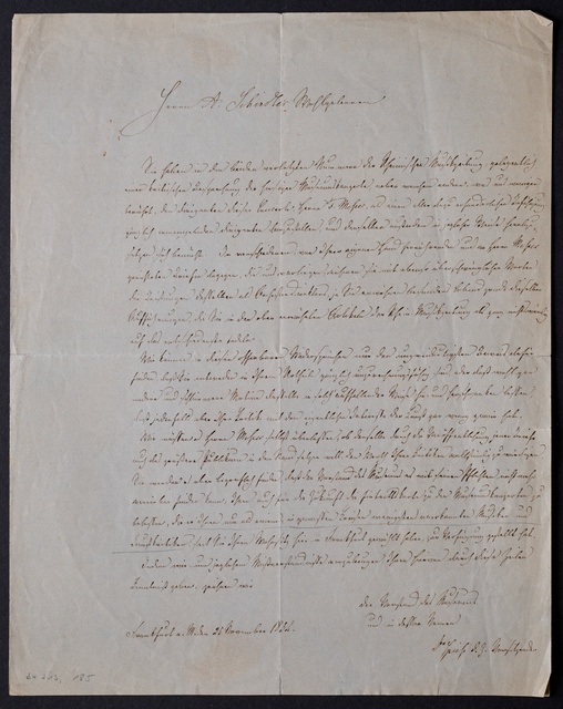 Ferdinand Ries, Brief an Franz Gerhard Wegeler in Koblenz, Frankfurt am Main, 25. November 1827, Autograph