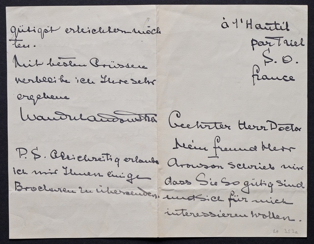 Wanda Landowska, Brief an den Verein Beethoven-Haus in Bonn, Triel sur Seine, o.D. [Herbst 1906], Autograph