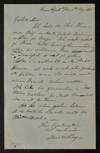 Ferdinand Ries, Brief an Franz Gerhard Wegeler in Koblenz, Frankfurt am Main, 19. November 1828, Autograph
